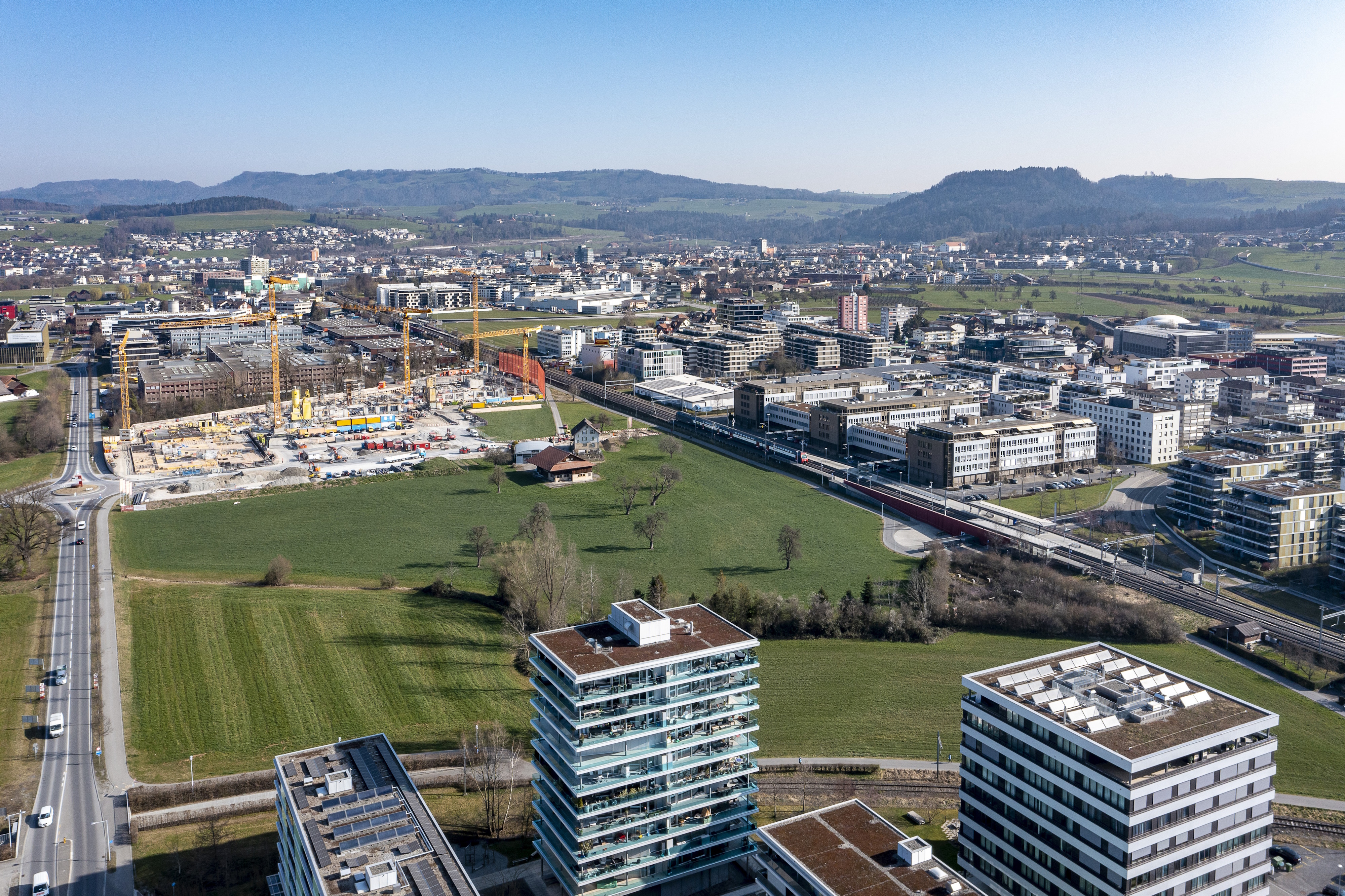 Das Hauptziel der städtebaulichen Studie ist es, eine solide Grundstruktur für einzelne Baufelder zu definieren und die Rahmenbedingungen für die weiteren Planungsschritte zu klären. Der Fokus der Studie liegt dabei auf dem Gemeindegebiet Baar. Es wurde kein eigentliches Projekt entwickelt, sondern auf der konzeptionellen, städtebaulichen Ebene gearbeitet. Das Ergebnis der städtebaulichen Studie liegt nun in einem umfassenden Synthesebericht vor. Dieser beschreibt den Planungsprozess und hält die wichtigsten Punkte für die weiteren Planungsschritte fest.